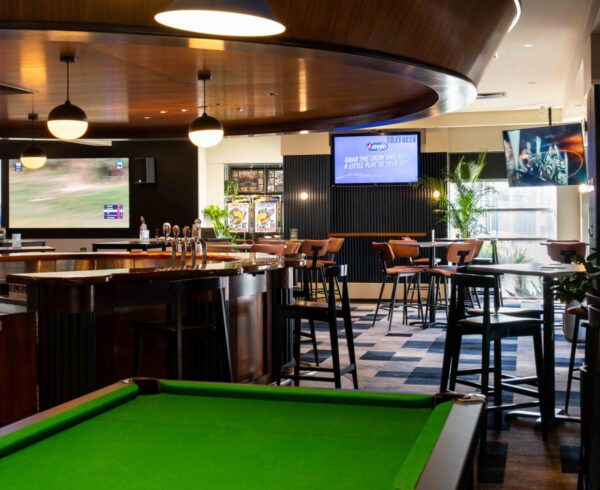 Settle into our spacious new sports bar (now open!) with wall-to-wall plasma screens, pool tables, and TAB facilities, or enjoy a relaxed meal in the bistro, featuring our famous top-tier salad and vegetable bar and our striking water feature.